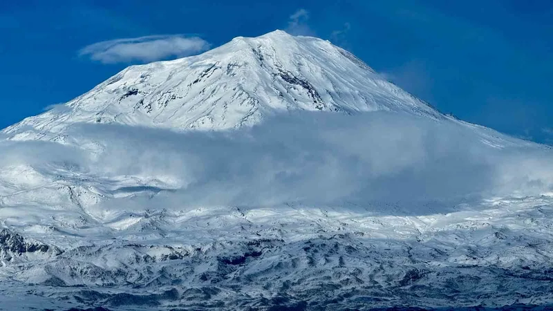 "Türkiye’nin çatısı" olarak bilinen Ağrı Dağı, zirvesindeki beyaz örtüsüyle göz kamaştırıyor.