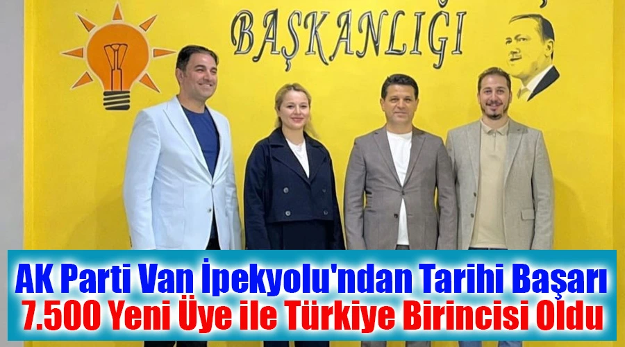 AK Parti Van İpekyolu İlçe Teşkilatı, 2025 yılı üye seferberliği çalışmaları kapsamında tarihi bir başarıya imza attı. İlçe Başkanı Yavuz Kuşan önderliğinde yürütülen saha çalışmaları sonucunda, 3 aylık bir sürede 7.500 yeni üye kazanılarak, Türkiye genelinde ilçe bazında birincilik elde edildi.