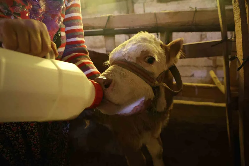Elazığ’ın Sugözü Mahallesi’nde hayvancılıkla geçimini sağlayan İlhan Cömert’in büyükbaş hayvanı doğum yaparken öldü. Yeni doğan buzağıyı ilk başlarda soğuktan üşümesin diye evinde besleyen Cömert, bir süre sonra büyükbaş hayvanlarının bulunduğu ahıra aldı. Buzağıyı kendi çocuklarından ayırt etmeyen aile, sabah uyanır uyanmaz kendi hayvanlarından sağdıkları sütü buzağıya içirdikten sonra tımarını yapıyor. İlhan Cömert, buzağı kendini toparlayana kadar elleriyle besleyeceklerini belirtti. Cömert, "Bir ay önce buzağımızın annesi doğarken öldü. Biberonla besliyoruz. Hayvan elimizde ölmesin diye diğer hayvanlardan sağdığımız ve dışarıdan aldığımız sütle besliyoruz. Sabah kalktığımızda 3 çocuğum var, buzağıyı da bizim çocuklarımızın yerine koymuşuz. Sabah hemen koşup karnını doyuruyoruz. Sütünü verip tımarını yapıyoruz. Hayvancılığı seviyoruz ama zorlukları da çok fazla. Onu görmesek olmuyor. Buzağı bizim maskotumuz oldu" dedi.