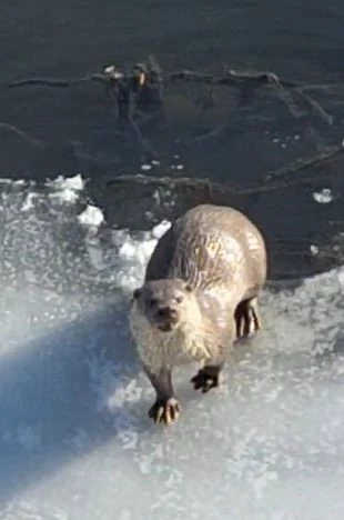 Kısa bir süre buz üstünde ilerleyen su samuru tekrar Kura nehri’ne dalarak gözden kayboldu.