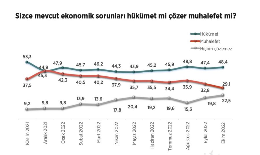 Hükümetin güven oyu yüzde 48,4 çıkarken, muhalefete inananların sayısı yüzde 29,1'de kaldı.