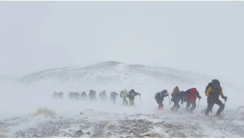 Van’da etkili olan tipi ve kuvvetli fırtına, dağcıların Artos Dağı’na planlanan tırmanışını engelledi. Sabah saatlerinde başlayan ve yüksek kesimlerde etkisini artıran olumsuz hava şartları nedeniyle ekip, güvenlik gerekçesiyle tırmanışı iptal etmek zorunda kaldı. Yoğun kar yağışıyla birlikte görüş mesafesinin düşmesi ve rüzgârın şiddetini artırması, dağın zirve rotasında risk oluşturdu. Dağcılar, muhtemel kazaların önüne geçmek amacıyla tırmanışı yarıda bırakarak güvenli şekilde geri döndüler.