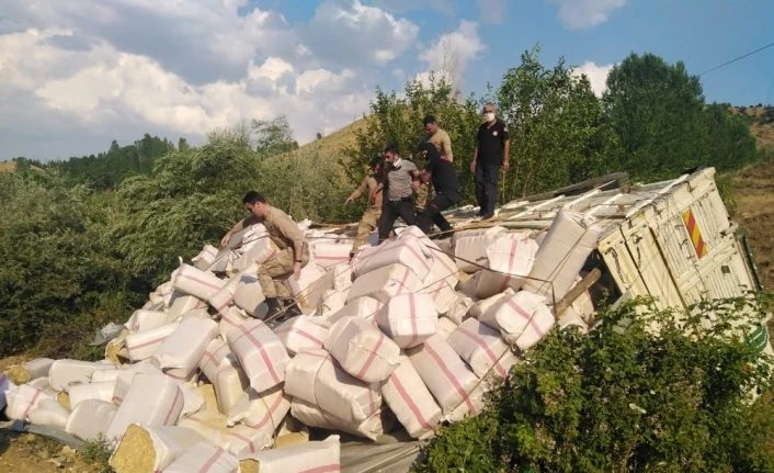 Bingöl’ün Genç ilçesinde freni boşalan kamyonun şarampole devrilmesi sonucu 2 kişi yaralandı.