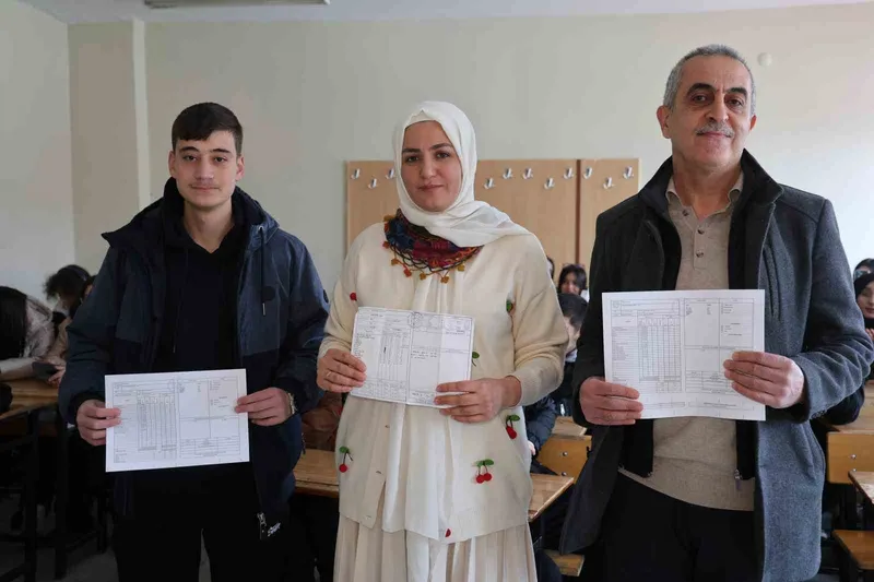 Karne heyecanını paylaşan 9’uncu sınıf öğrencisi Mustafa Celayir ise, "Hocalarım ile beraber bugün karne heyecanı yaşadık. Üç nesil burada yan yanayız" dedi.