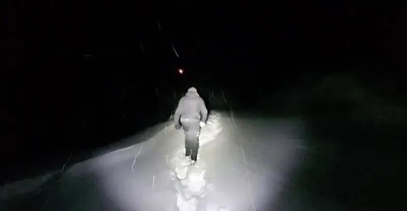 Tunceli’de ekipler, yoğun sis, kar ve zorlu arazi şartlarında 3 kilometre yürüyerek hasta vatandaşa ulaştı.