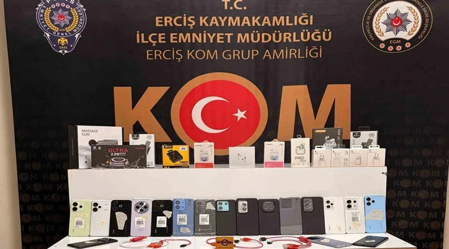 Van İl Emniyet Müdürlüğü’ne bağlı Erciş Kaçakçılık ve Organize Suçlarla Mücadele (KOM) Büro Amirliği ekipleri tarafından 14-15 Şubat 2026 tarihlerinde gerçekleştirilen çalışmalar kapsamında kaçak malzeme ve ruhsatsız silah ele geçirildi. Yapılan çalışmalarda 5607 ve 5809 Sayılı Kanun kapsamında cumhuriyet savcısının talimatlarıyla 14 Şubat 2026 tarihinde bir iş yeri ve bir araçta yapılan aramalarda, 15 adet kayıt dışı gümrük kaçağı cep telefonu, 3 adet elektronik kimlik bilgileri değiştirilmiş (klonlanmış) 18 adet cep telefonu, 1 adet IMEI atma işleminde kullanılan box cihazı ve kabloları, 6 adet kablosuz kulaklık, 4 adet şarj başlığı, 1 adet akıllı kol saati, 2 adet powerbank, 1 adet masaj aleti ele geçirildi.