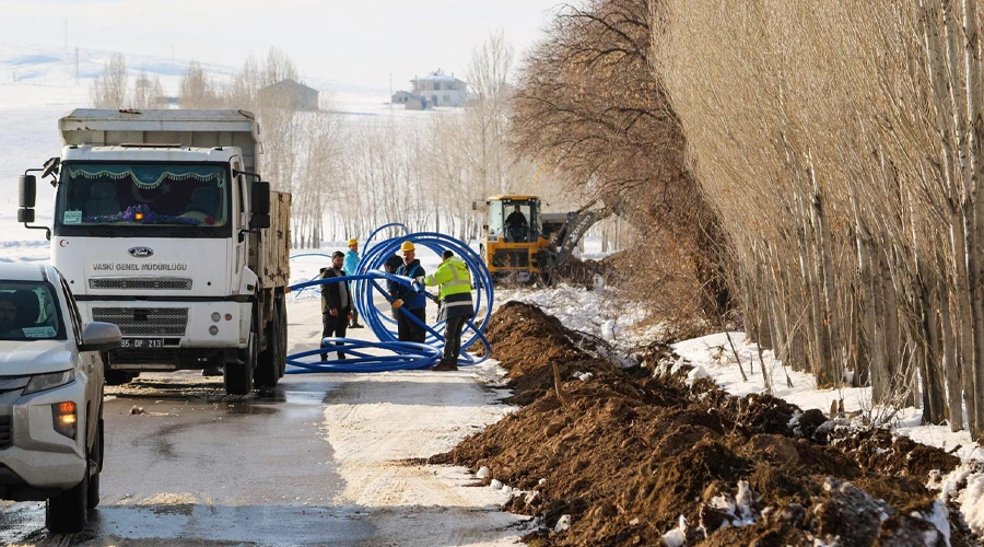Van'ın Erciş ilçesine bağlı mahallelerde VASKİ ekipleri, 2 bin metre yeni hat döşeyerek 70 hanenin içme suyu sorununu çözdü.
