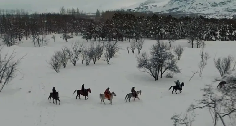 Drone ile kaydedilen görüntülerde, grubun at sırtında ilerleyerek karla kaplı geniş arazilerde yol aldığı ve zaman zaman ağaçların arasında dolaştığı görülüyor. Fotoğraf sanatçısı ve drone pilotu Emrah Karakoç tarafından çekilen görüntüler, Erzincan’ın kış manzarasını etkileyici bir perspektifle ortaya koyuyor.