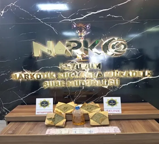 Erzurum’da düzenlenen operasyonda 7 kilo 300 gram skunk ile 2 kilo 150 gram metamfetamin ele geçirildi, 3 şüpheli tutuklandı.