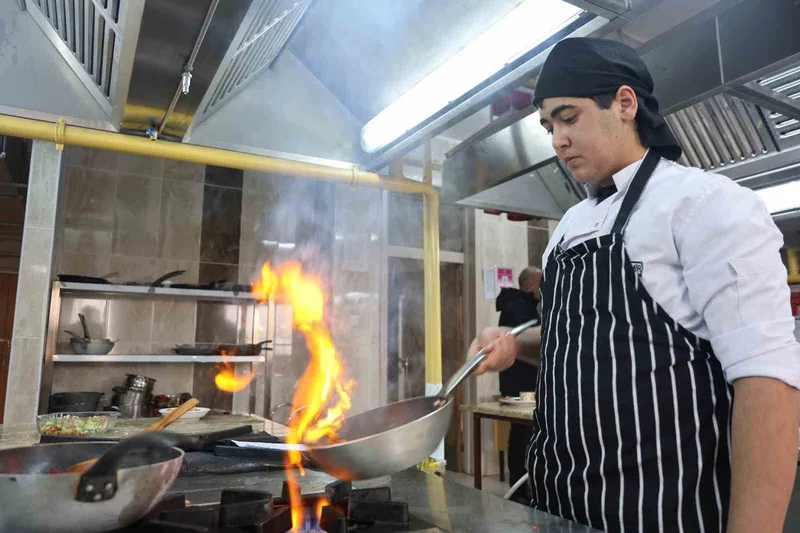 Okul içerisinde fırının mevcut olduğunu aktaran Bayram, "Fırında günlük olarak 4 ila 5 bin arasında ekmek üretiyoruz. Öğrencilerimiz orada çalışarak harçlıklarını kazanıyor. Üretilen ekmekleri, taşıma hizmeti vermiş olduğumuz okullara gönderiyoruz. Aynı zamanda çevremizde bulunan pansiyonlu okullarımıza da ekmekleri dağıtıyoruz. Kesinlikle bir üretim tesisi gibi çalışıyoruz. Hizmet üretiyoruz. Çevremizdeki okullara ve insanlara faydalı olabilmek, öğrencilerimizin sektöre daha iyi ve becerikli olabilmeleri için bir mücadele veriyoruz. Öğrencilerimiz okulumuzda, tam anlamıyla işi öğreniyorlar. Yaz aylarında da öğrencilerimizi otellere gönderiyoruz. 6 aylık bir beceri eğitimi görüyorlar. Burada öğrenmiş olduklarını tamamıyla pekiştiriyorlar. Öğrencilerimiz aynı zamanda buradan staj yapacakları yere hazır bir şekilde gitmiş oluyor. Çünkü uygulama otelinde sürekli uygulamanın içerisinde olduklarından dolayı gittikleri yerde yabancılık çekmiyorlar" diye konuştu.