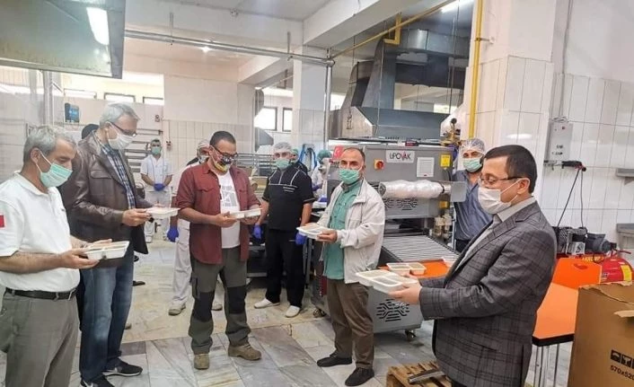 Malatya’da Ramazan Ayı boyunca 65 yaş ve üzeri sokağa çıkamayan vatandaşlara iftar yemeği yapan İnönü Üniversitesi’nde görevli aşçıları ziyaret ederek, hem Ramazan Bayramı’nı kutladı