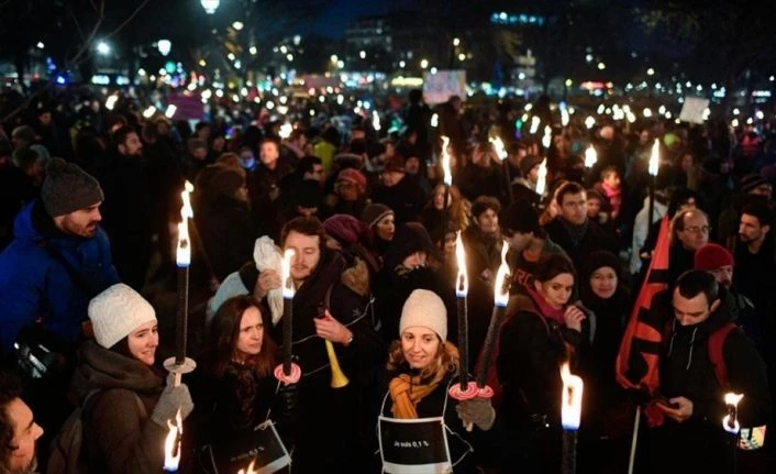 Fransa'da binlerce kişi, Cumhurbaşkanı Emmanuel Macron yönetiminin emeklilik reformuna karşı meşalelerle gösteri düzenledi.