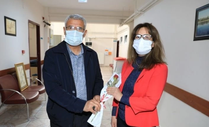 Battalgazi Belediye Başkanı Osman Güder, 14 Mart Tıp Bayramı’nda ilçede görev yapan sağlıkçıları unutmadı. Güder, 14 Mart Tıp Bayramı dolayısıyla Eskimalatya’daki Battalgazi Semt Polikliniği’ni ziyaret etti. Sağlık alanında değerli katkılarda bulunan sağlık çalışanlarının 14 Mart Tıp Bayramı’nı kutlayan Güder, özellikle tüm dünya ve Türkiye’yi etkisi altına alan Covid-19 sürecinde ortaya koydukları yoğun mücadelelerinden dolayı tebrik etti. Sağlık çalışanlarına tek tek karanfil ve çeşitli hediyeler veren Başkan Güder, “Sağlığımız için gece gündüz demeden her koşulda büyük bir özveriyle görev yapan, kendisini ‘insana hizmet’ ilkesiyle mesleğine adamış sağlık çalışanlarımıza görevlerinde başarılar diliyorum” dedi.