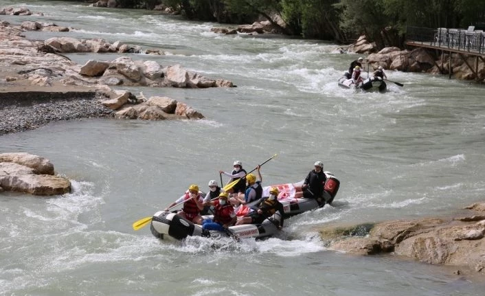 Tunceli’de baharla coşan Munzur Nehri’nde Vali Tuncay Sonel ve beraberindekiler Gençlik Haftası etkinlikleri kapsamında rafting yaparak sezonu açtı.