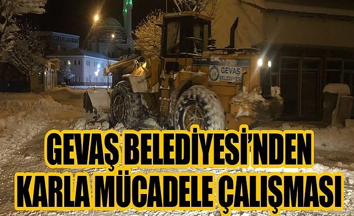 Gevaş Belediyesi ekipleri ilçede yağan karlardan dolayı vatandaşların olumsuzluk yaşamaması için gece gündüz karla mücadelesini sürdürdü. Kar temizleme çalışmalarından sonra oluşan buzların erimesi içinde tuzlama çalışması ayrına yapıldı.