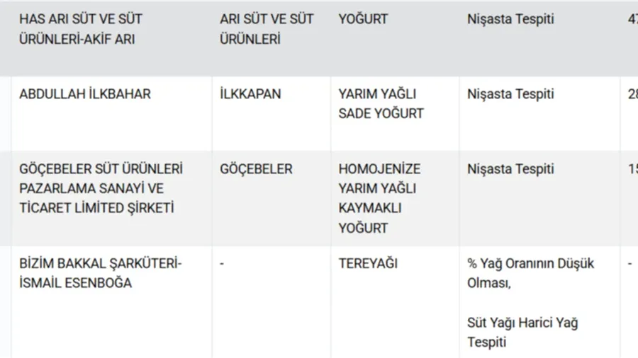 YOĞURTTA NİŞASTA TESPİT EDİLEN MARKALAR