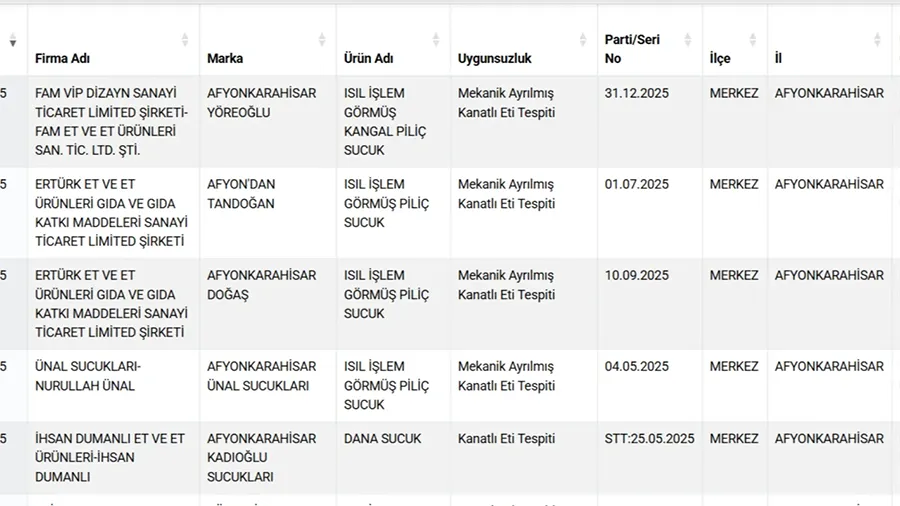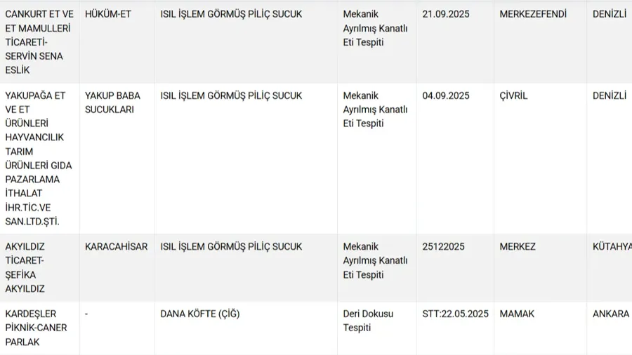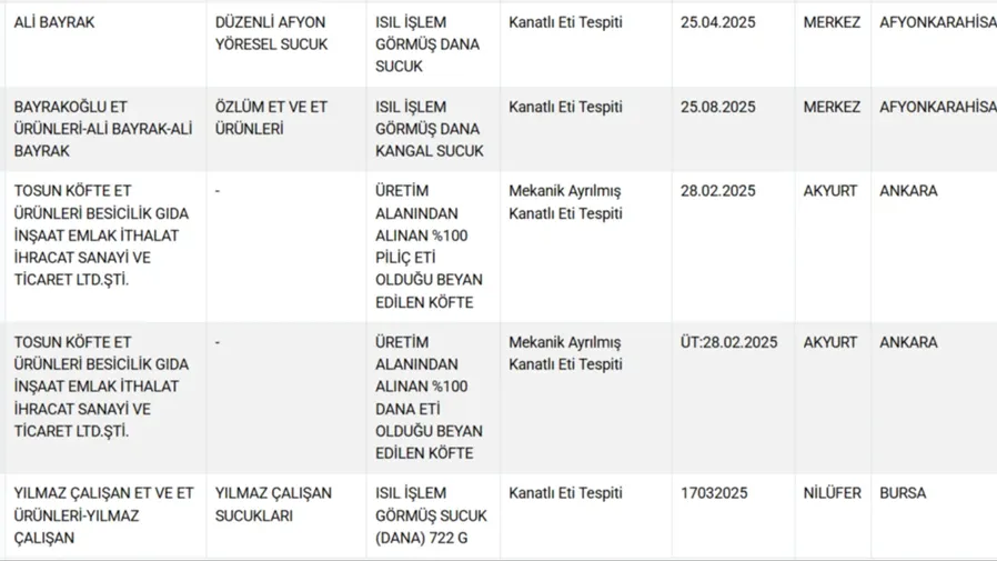 Tarım ve Orman Bakanlığı, vatandaşın sağlığını hiçe sayarak gıda ürünlerinde hile yapan firmalara karşı denetim ve ifşa seferberliğini sürdürüyor. 81 ilde aralıksız devam eden denetimlerde, tüketiciyi kandıran ve sağlığını tehlikeye atan ürünler tek tek tespit edilerek kamuoyuna duyuruluyor. Son güncellemeyle birlikte, özellikle et ürünlerinde ortaya çıkan detaylar, tüketicilerin tepkisine neden oldu.