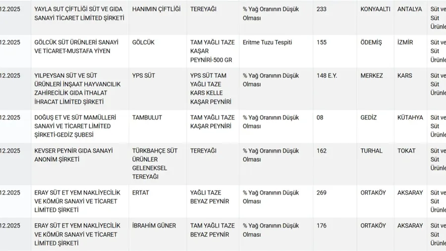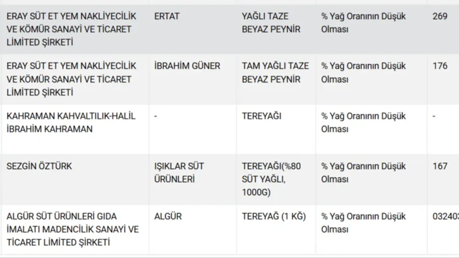 TEREYAĞI VE PEYNİRDE HİLE TESPİT EDİLEN MARKALAR