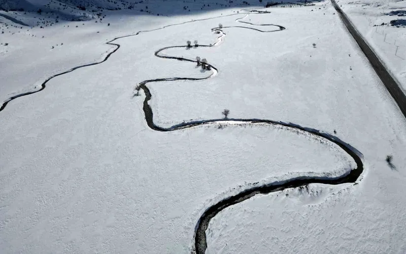 Beyaza bürünen dağlar arasında kıvrıla kıvrıla uzanan menderesler, doğaseverlerin ve sürücülerin ilgisini çekti. Karla kaplanan vadide ortaya çıkan eşsiz görüntüler, bölgenin doğal güzelliklerini bir kez daha gözler önüne serdi.