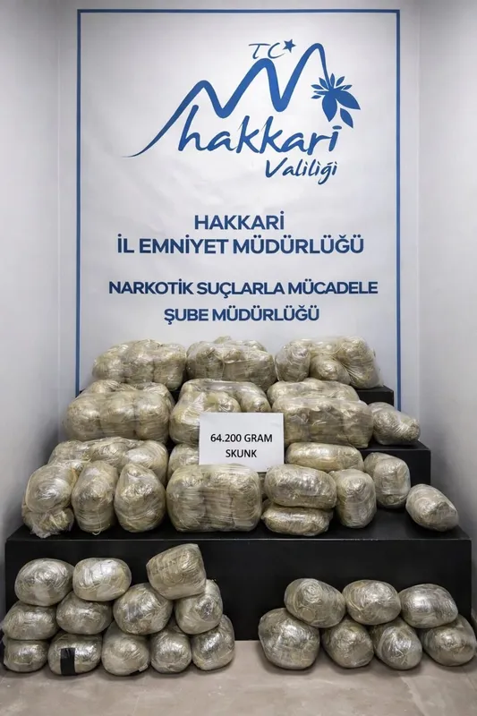 Hakkari Valiliğinden yapılan açıklamada, "İlimizde uyuşturucu ve uyarıcı madde ticaretinin önlenmesine yönelik yürütülen çalışmalar kapsamında, Hakkari İl Emniyet Müdürlüğü ekiplerince gerçekleştirilen operasyonda 82 parça halinde toplam 64 kilogram skunk maddesi ele geçirilmiş olayla bağlantılı 2 şüpheli şahıs yakalanmıştır. Yakalanan şüpheliler, Cumhuriyet Savcısının talimatları doğrultusunda yürütülmekte olan başka bir soruşturma kapsamında İl Jandarma Komutanlığına teslim edilmiştir. İl Emniyet Müdürlüğü ile İl Jandarma Komutanlığı tarafından koordineli şekilde yürütülen çalışmalar kapsamında Hakkari, Van ve Mersin illerinde eş zamanlı operasyonlar düzenlenmiş; operasyonlar sonucunda 8 şüpheli şahıs yakalanmıştır. Yakalanan şahıslar adli makamlara sevk edilmiş , 4 şahıs tutuklanırken, 4 şahıs hakkında ise yurt dışı yasağı ile adli kontrol kararı verildi. Tutuklanan şahıslardan biri emniyet personelidir" denildi.