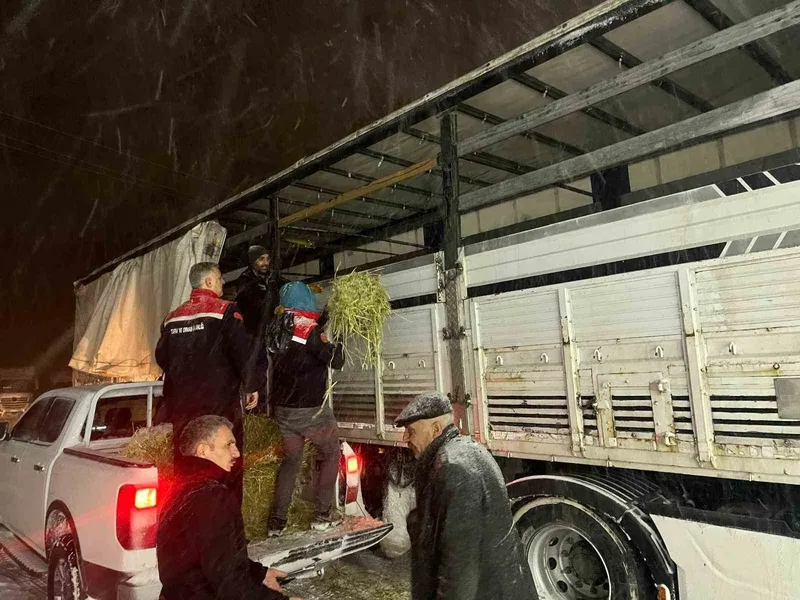 Erzurum’da etkili olan kar yağışı ve kış şartları, hayvan sahiplerini de zor duruma bırakıyor. Erzurum Tarım ve Orman İl Müdürlüğü zor durumda kalan üreticilerin imdadına koşuyor ve nakliye esnasınd mahsur kalan hayvanlara kaba yem desteği veriyor.