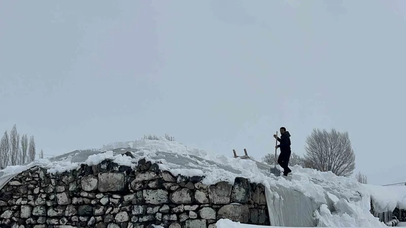 Köy sakinleri, hem evlerinin önünü hem de hayvan barınaklarını kar yükünden korumak için yoğun çaba sarf ediyor.