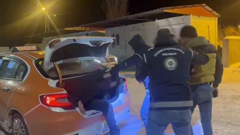 Edinilen bilgiye göre, Göçmen Kaçakçılığıyla Mücadele ve Hudut Kapıları Şube Müdürlüğü ekipleri, şüphelendikleri bir ticari taksiyi polis noktasında durdurdu. Durdurulan araçta arama yapan ekipler, şoför ve yanındaki yolcunun tedirgin hareketlerinden şüphelenerek bagajı kontrol etti. Bagaj kapağının açılmasıyla birlikte, dar alana gizlenmiş halde 2 Afganistan uyruklu düzensiz göçmenle karşılaşıldı. Yurda yasa dışı yollarla girdiği tespit edilen göçmen muhafaza altına alınırken, araçta bulunan 2 kişi "Göçmen Kaçakçılığı" suçlamasıyla gözaltına alındı.