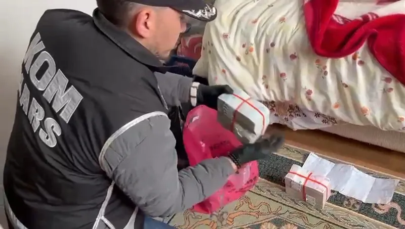 Kars’ta tefecilik operasyonu: Yatağın altından poşet poşet para çıktı