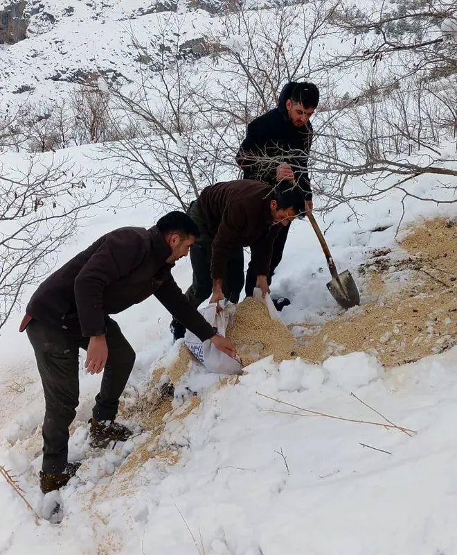 Erzincan’da bir grup avcı tarafından Kemah ilçesinin kırsal ve dağlık bölgelerinde, yaban hayvanlarının yoğun olarak bulunduğu alanlara yem ve çeşitli yiyecekler bırakıldı. Zorlu kış koşullarında doğadaki canlıların aç kalmaması amacıyla gerçekleştirilen bu çalışma, yaban hayatına ve doğaya verilen önemi bir kez daha gözler önüne serdi.