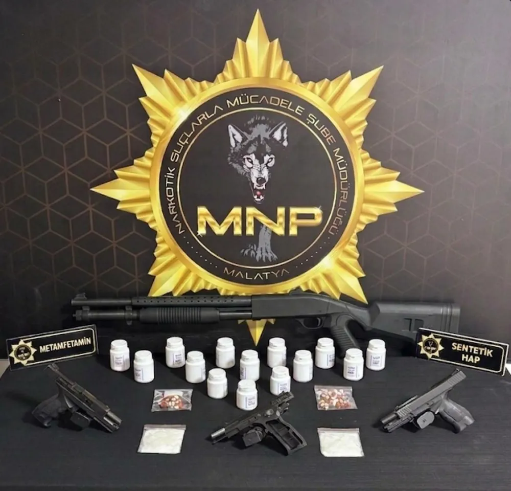 Malatya’da, İl Emniyet Müdürlüğü’ne bağlı Narkotik Suçlarla Mücadele ile Kaçakçılık ve Organize Suçlarla Mücadele Şube Müdürlüğü ekiplerince uyuşturucu madde ticareti ve silah kaçakçılığına yönelik operasyon düzenlendi. Belirlenen 3 adreste eş zamanlı yapılan aramalarda 812 adet sentetik ecza, 37 gram metamfetamin maddesi, 3 adet ruhsatsız tabanca, 1 adet ruhsatsız tüfek ele geçirilirken, 3 zanlı gözaltına alındı.