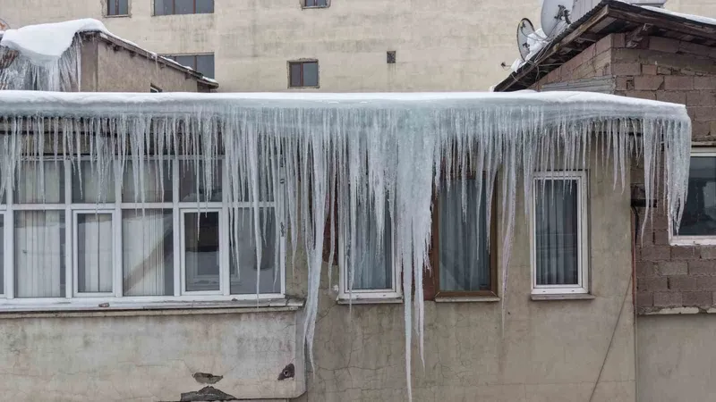 Muş’ta kar yağışının ardından etkisini artıran Sibirya soğukları nedeniyle ev ve iş yerlerinin çatılarında metrelerce uzunlukta buz sarkıtları oluştu.