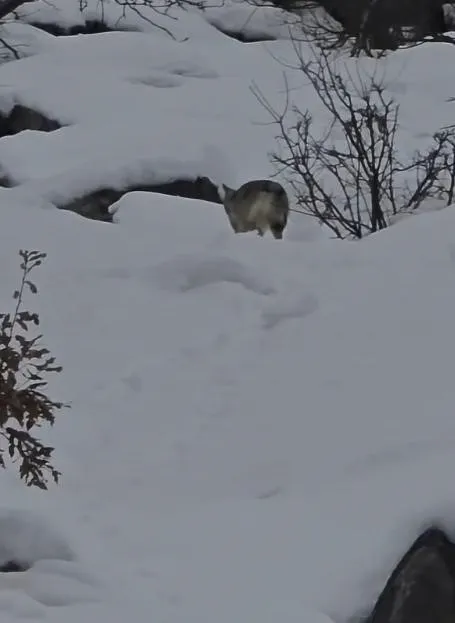 Tunceli’nin Pülümür Vadisi’nde, karla kaplı dağlık alanda yiyecek arayan bir kurt görüntülendi. Doğa Koruma görevlisi Murat Özel tarafından kaydedilen görüntülerde, kurdun bir süre bölgede dolaştığı görüldü. Zorlu kış şartlarının hakim olduğu vadide yiyecek arayışını sürdüren kurt, bir süre sonra gözden kayboldu.