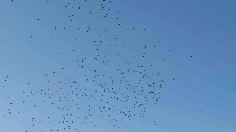 Sığırcık kuşlarının gökyüzündeki dansı mest etti