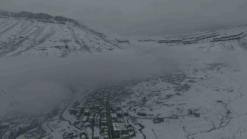 Sabah saatlerinde etkisini artıran yoğun sis ilçe genelini beyaz bir örtüyle kaplarken yüksek kesimlerdeki dağların karla kaplanması ortaya kartpostallık manzaralar çıkardı. Sisin ilçe semalarında oluşturduğu görsel şölen dikkat çekerken, sınır boyunca uzanan dağ silsileleri adeta sis denizi içinde kayboldu. Dron görüntülerinde karla kaplı zirveler ile sisin oluşturduğu kontrast, Derecik’in doğal güzelliğini bir kez daha gözler önüne serdi.