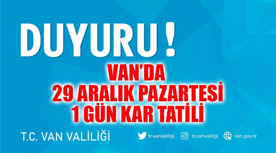 Van Valiliği, il genelinde etkili olan yoğun kar yağışı nedeniyle önemli bir karar aldı. Meteoroloji Bölge Müdürlüğü ile yapılan değerlendirmelerin ardından, 29 Aralık 2025 Pazartesi günü eğitime bir günlük ara verildi.
