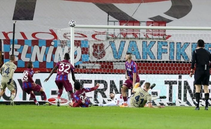 TRABZON (AA) - Trabzonspor-Fenerbahçe karşılaşmasının 11. dakikasında Sosa'nın sağdan kullandığı köşe vuruşunda, ceza alanı içinde Serdar Aziz'in kafa vuruşunda, top direğin az farkla üzerinden auta çıktı.