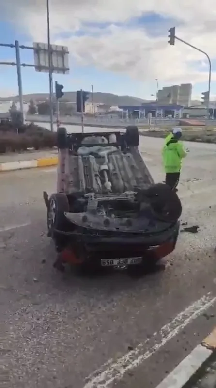 Elazığ’da sürücüsünün direksiyon hakimiyetini kaybettiği otomobil takla attı. Kazada takılan emniyet kemerinden dolayı sürücünün burnu dahi kanamadı.