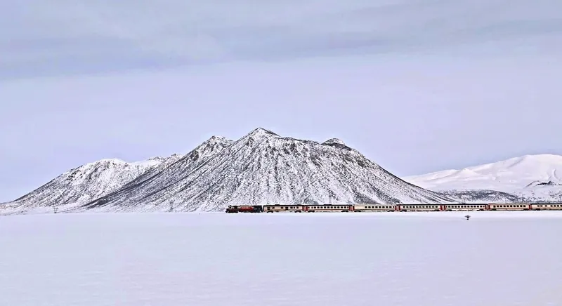 Yolculuğun sonuna doğru Rahva Ovası’ndan geçen tren, karlı Kirkor Dağı ile eşsiz bir manzaranın parçası haline geliyor. Van Gölü Ekspresi, her kış mevsiminde olduğu gibi bu yıl da yolcularına unutulmaz bir seyahat deneyimi sunuyor.