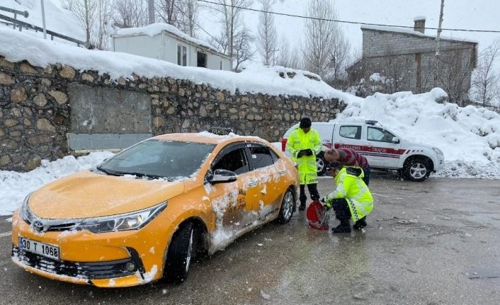 Türkiye genelinde olduğu Van İl Jandarma Komutanlığı Jandarma Trafik Timleri tarafından ağır kış şartlarına rağmen ‘emniyet kemeri ve cep telefonu’ denetimi yapıldı. Emniyet kemeri ve cep telefonu denetiminin yanında zincirsiz yola çıkan araçların ilerlemesine müsaade etmeyen Jandarma Trafik Timleri; kış şartlarında zincir takmanın ve emniyet kemeri kullanmanın öneminin yanında araç kullanırken cep telefonu kullanılmaması konusunda sürücüleri ve yolcuları bilgilendirdi.