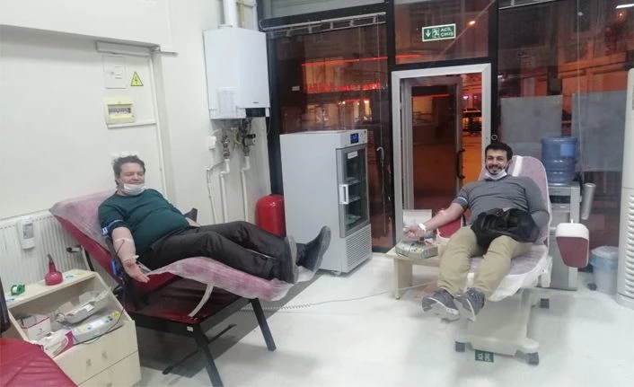 Van Memur Sen ve Eğitim Bir-Sen Van Şube Başkanı Mehmet Ali Uca ve üyeleri, korona virüsü nedeniyle azalan bağışına dikkat çekmek adına kan bağışında bulunarak farkındalık oluşturdu.