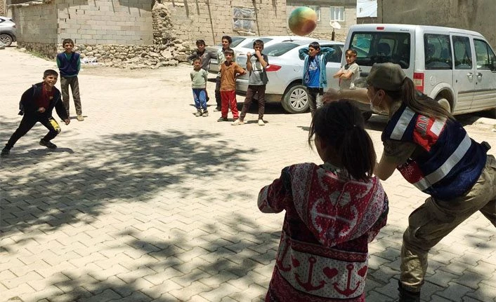 Gürpınar Kaymakamı Fatih Sayar yaptığı açıklamada, “İlçe jandarma personellerimiz depremde hasar gören Elaçmaz Mahallemizde vatandaşları yalnız bırakmıyor. AFAD ve Kızılay ekiplerimize yardım eden ekiplerimiz daha sonra çocuklar ile yakından ilgilenerek top oynadılar.” ifadelerine yer verdi.