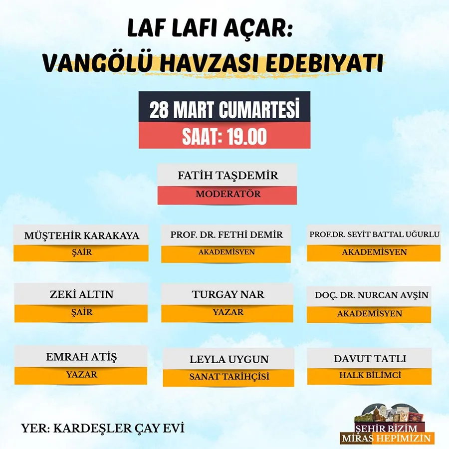Önümüzdeki hafta düzenlenecek olan “Van Gölü Edebiyatı” temalı oturum, bu yılki programın kapanışını yapacak. Bu oturumla birlikte, "Şehir Bizim, Miras Hepimizin" mottosuyla yola çıkan çalışmaların ikinci yılı da resmen tamamlanmış olacak.