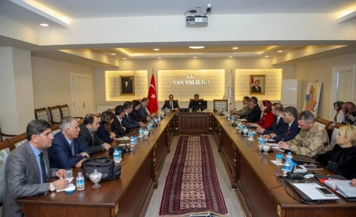 Çin’in Wuhan kentinde ortaya çıkıp tüm dünyayı etkisi altına alan yeni tip korona virüs (COVİD-19) ile ilgili Cumhurbaşkanlığı himayesinde Sağlık Bakanlığının genel koordinasyonu ve Bilim Kurulunun kararları doğrultusunda ülke genelinde olduğu gibi Van’da de alınan tedbir ve önlemleri gözden geçirmek üzere Vali Mehmet Emin Bilmez başkanlığında toplantı gerçekleştirildi.