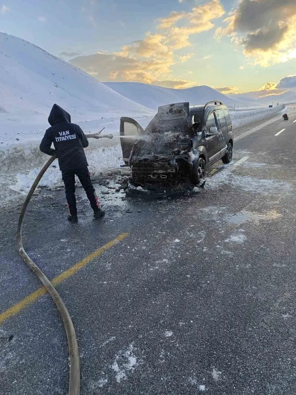 Van’ın Çaldıran ilçesinde seyir halindeyken yanmaya başlayan kapalı kasa kamyonet, itfaiye ekipleri tarafından söndürüldü.