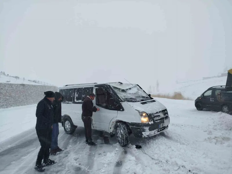 Van’ın Başkale ilçesinde kontrolden çıkan minibüs, yol kenarındaki kar birikintisine saplandı.