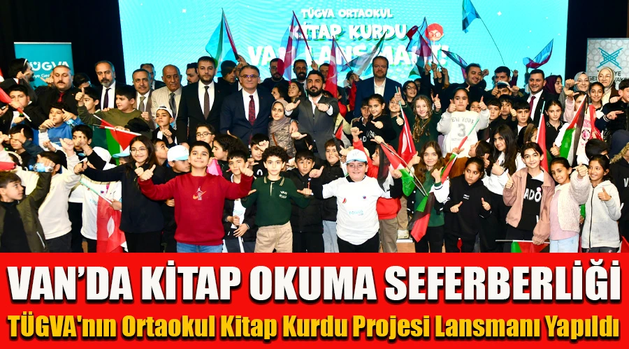 Türkiye Gençlik Vakfı (TÜGVA) Van İl Temsilciliği tarafından hayata geçirilen "Ortaokul Kitap Kurdu" projesinin lansmanı, görkemli bir törenle Yüzüncü Yıl Üniversitesi (YYÜ) Cengiz Andiç Kültür Merkezi'nde gerçekleştirildi. Programa Van Valisi Dr. Ozan Balcı, TÜGVA Genel Başkanı İbrahim Beşinci, YYÜ Rektörü Prof. Dr. Hamdullah Şevli, AK Parti Van İl Başkanı Abdulahat Arvas, sivil toplum kuruluşu temsilcileri, akademisyenler, öğretmenler ve çok sayıda öğrenci katıldı.