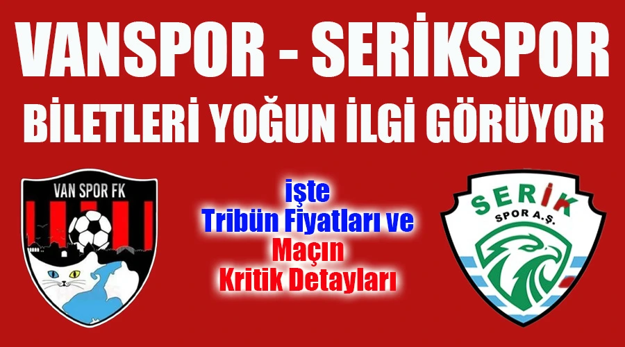 Vanspor FK, Trendyol 1. Lig'de Serikspor'u konuk ediyor. 29 Kasım Cumartesi günü oynanacak maçın bilet fiyatları (75 TL - 150 TL), satış kanalı ve maçın iki takım için önemi hakkında tüm detaylar haberimizde.