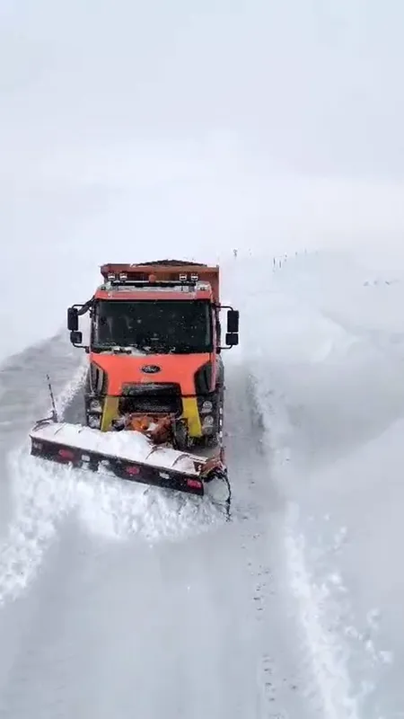 Ağrı-Kağızman kara yolunda etkili olan yoğun tipi nedeniyle bazı bölgeler ulaşıma kapanırken, ekipler yolu açık tutabilmek için çalışmalarını sürdürüyor.