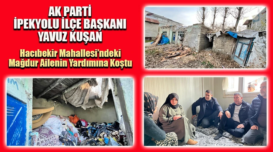 AK Parti İpekyolu İlçe Başkanı Yavuz Kuşan, ilçeye bağlı Hacıbekir Mahallesi'nde yaşayan ve uzun süredir çeşitli sıkıntılarla boğuşan bir aile için harekete geçti. Vatandaştan gelen bilgi üzerine derhal çalışma başlatan Kuşan, ailenin mağduriyetinin giderilmesi için tüm imkanları seferber etti.