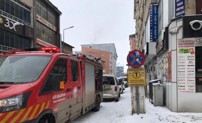 Ağrı’da bir iş merkezinin en üst katına çıkan genç kız, son anda kurtarıldı.